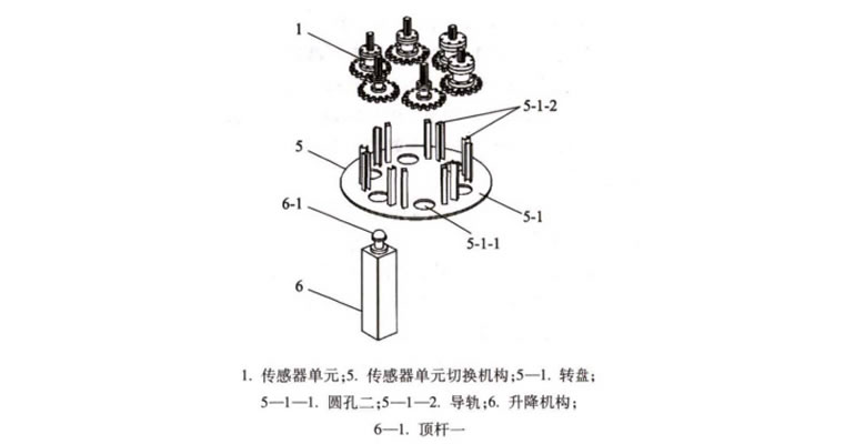 2、軟件根據(jù)扭矩扳手的示值范圍確定校準(zhǔn)點(diǎn)后 ,通過下位機(jī)控制傳感器單元切換機(jī)構(gòu)選擇相應(yīng)量程的傳感器單元,升降機(jī)構(gòu)推動(dòng)傳感器單元上升并與連接軸連接;