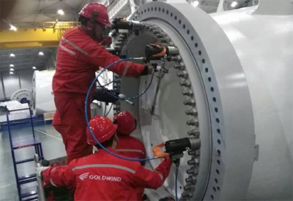 這也就是為什么在實際的風力發(fā)電機安裝過程中為什么要使用高精度的液壓扳手和風電專用螺栓拉伸器來嚴格按照要求施加預緊力預緊風機螺栓,避免因精度不足造成實際作用在螺栓上的預緊力過小導致螺栓實際壽命低于設計壽命。