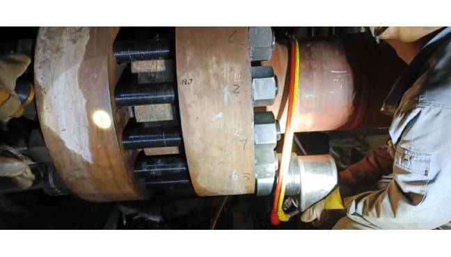 其實(shí)大型水輪機(jī)的很多位置也都是使用使用高強(qiáng)螺栓連接,像基礎(chǔ)環(huán)、座環(huán)、蝸売、尾水管排水盤形閥及其附件、蝸殼排水盤形閥及其附件機(jī)坑里襯底環(huán)、頂蓋、轉(zhuǎn)輪導(dǎo)葉及操作機(jī)構(gòu)、接力器、主軸及密封、輪機(jī)導(dǎo)軸承大軸自然補(bǔ)氣裝置等。這些螺栓的安裝預(yù)緊之后需要經(jīng)受住惡劣的運(yùn)行環(huán)境,因此預(yù)緊力要求也是比較高。水輪機(jī)安裝預(yù)緊或者檢修做采用的螺栓預(yù)緊工具一般是以液壓螺栓拉伸器為主。液壓螺栓拉伸器軸向拉伸,螺栓上所加載的預(yù)緊力損耗較少,有效加載更多。但在一些特殊的位置,螺栓周圍空間特別小,只能使用薄型的中空液壓扳手來(lái)進(jìn)行預(yù)緊拆卸。因此,水輪機(jī)的安裝檢維修既需要螺栓拉伸器也需要液壓扳手。