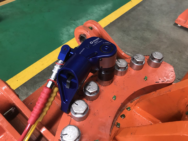 供貨液壓扳手之前,與客戶針對(duì)螺栓的強(qiáng)度等級(jí)及現(xiàn)場(chǎng)要求,精確計(jì)算測(cè)量,經(jīng)過(guò)多次試驗(yàn)數(shù)據(jù)分析,最終選擇了3MXT液壓扳手,實(shí)現(xiàn)了螺栓的緊固與拆松方案。