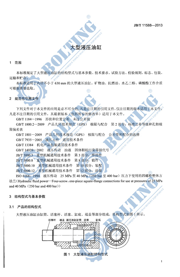 單雙作用大噸位液壓油缸、單雙作用大噸位液壓千斤頂執行標準